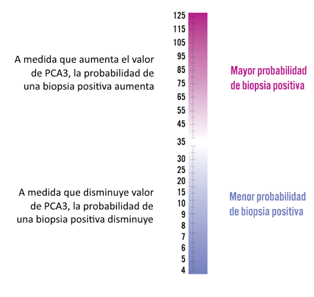 - El valor de PCA3 indica la probabilidad de encontrar cáncer de próstata en una biopsia